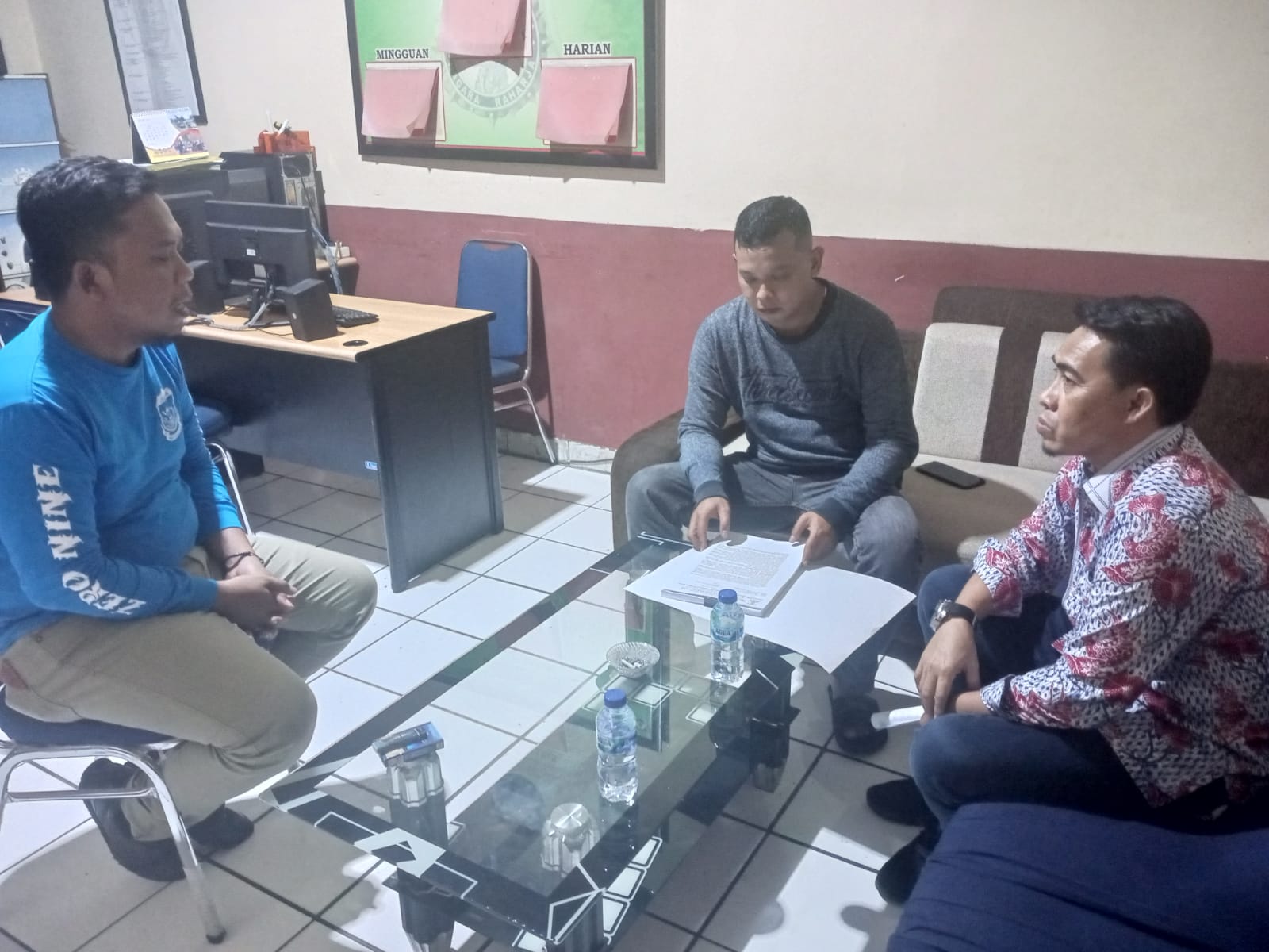 Personil Bhabinkamtibmas Aiptu Daryo.E melaksanakan patroli dialogis dengan menyapa petugas jaga ronda serta memberikan himbauan ketertiban dan keamanan masyarakat (kamtibmas) kepada warga di Lingkungan Daliran