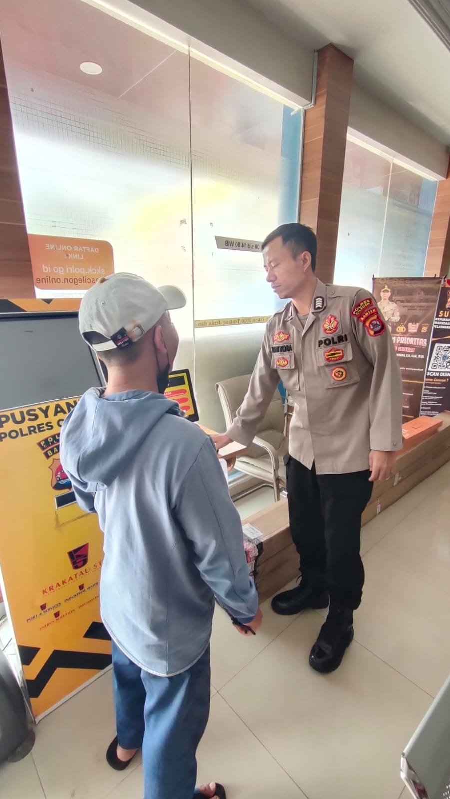 POLRES CILEGON–Polda Banten. Personil Bhabinkamtibmas Aiptu Daryo.E melaksanakan patroli dialogis dengan menyapa petugas jaga ronda serta memberikan himbauan ketertiban dan keamanan masyarakat (kamtibmas) kepada warga di Lingkungan Daliran, Kelurahan Kebondalem, Kecamatan Purwakarta, Kota Cilegon.Minggu.(04-01-2026). Kegiatan yang dilakukan pada malam hari tersebut bertujuan untuk mengintensifkan komunikasi antara Polri dengan masyarakat, serta memastikan...