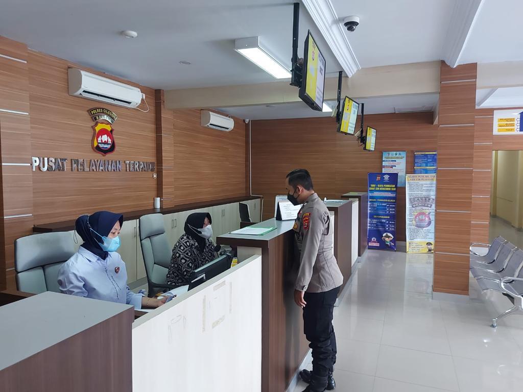 Polwan Polres Cilegon Aipda Emi Prasetyo Selaku Personil siwas Polres Cilegon Melakukan pengechekan dan monitoring pada pelayanan Izin Kermaian pada sat Intel Polres Cilegon.