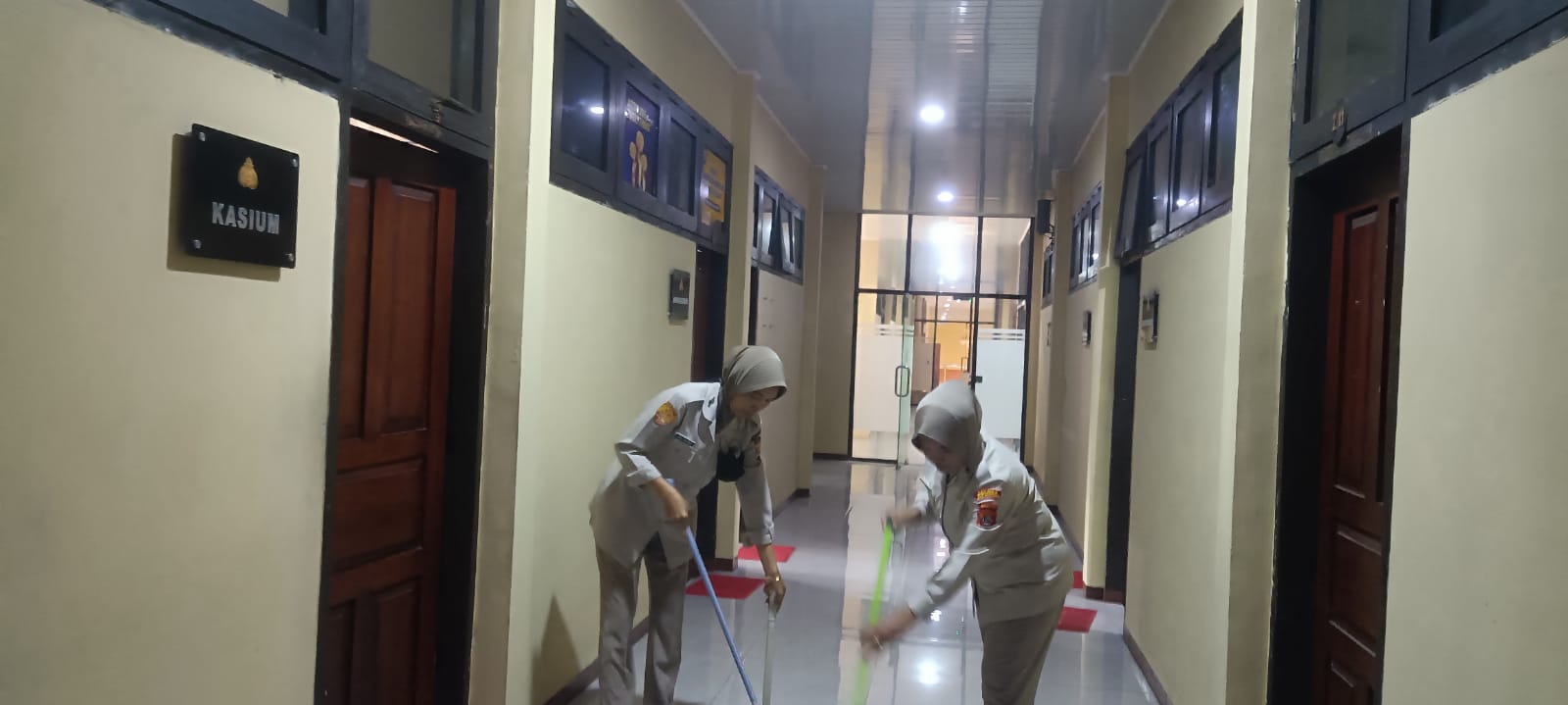 Tingkatkan Kinerja Lewat Kebersihan, SIUM Polres Cilegon Adakan Kerja Bakti