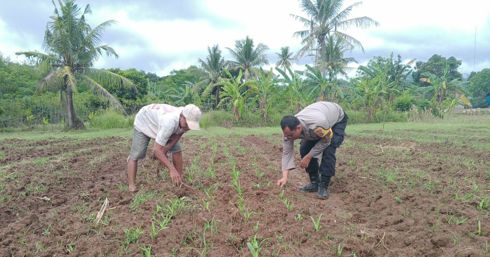 Bripka Bambang dan Bripka Susilo Bhabinkamtibmas Turun Ke Ladang Bersama Petani Dukung Swasembada Pangan