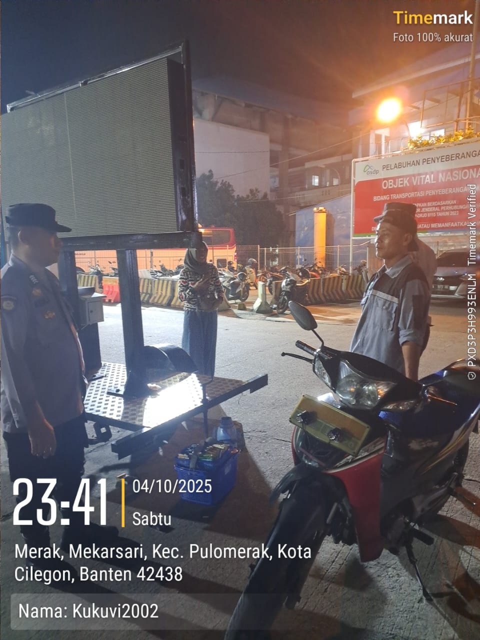 Cilegon - Personil Polsek Kskp Merak Polres Cilegon melaksanakan patroli di kawasan pelabuhan merak memberikan rasa aman dan damai, Minggu (05/10/2025)