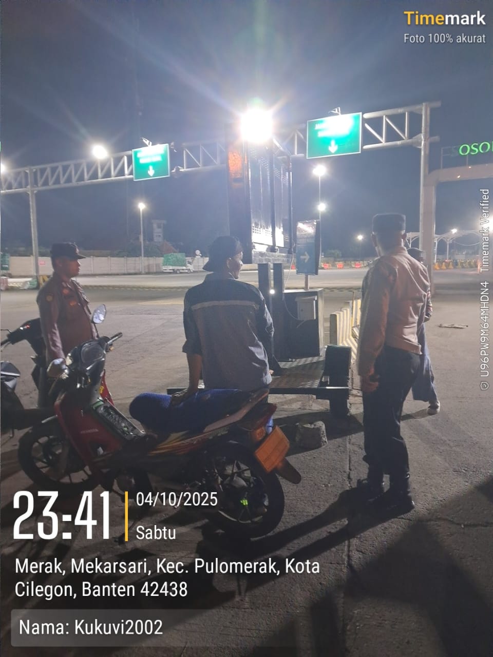 Cilegon - Personil Polsek Kskp Merak Polres Cilegon melaksanakan patroli di kawasan pelabuhan merak memberikan rasa aman dan damai, Minggu (05/10/2025)
