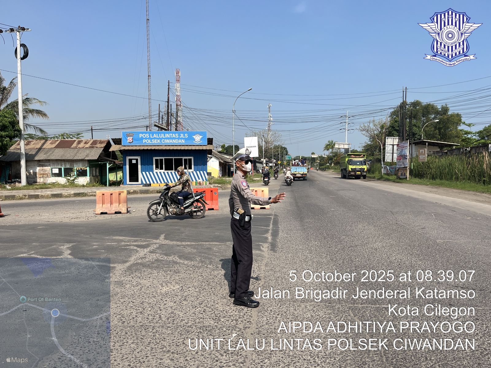 Cilegon - Unit Lantas Polsek Ciwandan menyediakan pelayanan lalu-lintas wisata untuk memastikan keamanan dan kelancaran arus lalu-lintas di wilayah Ciwandan. Pelayanan ini bertujuan untuk memberikan rasa aman dan nyaman bagi wisatawan yang berkunjung ke Cilegon,Minggu (05/10/2025).