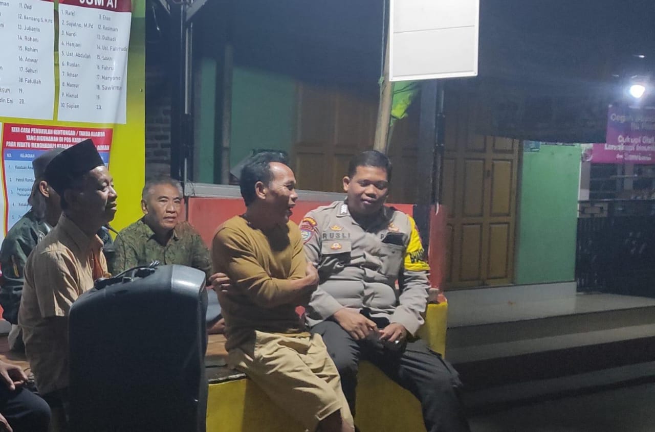 Personel Bhabinkamtibmas Polsek Anyar Polres Cilegon Polda Banten melaksanakan sambang Ronda Siskamling Dalam rangka menjaga Harkamtibmas dan Sebagai bentuk mendukung Program Quick Wins Presisi Polri, Senin (06/10).