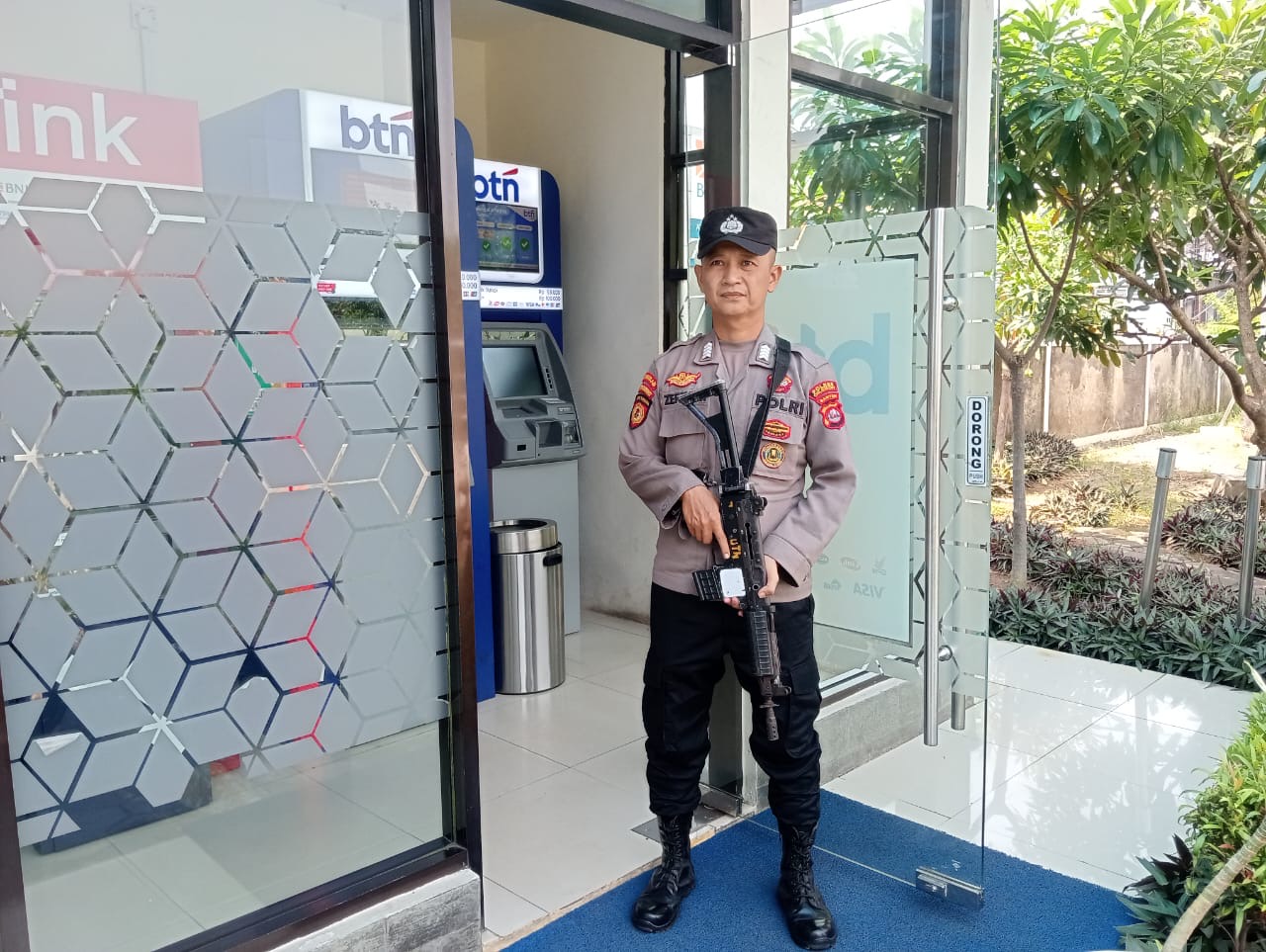 Anggota satpamobvit polres cilegon melaksanakan pengamanan bank BTN