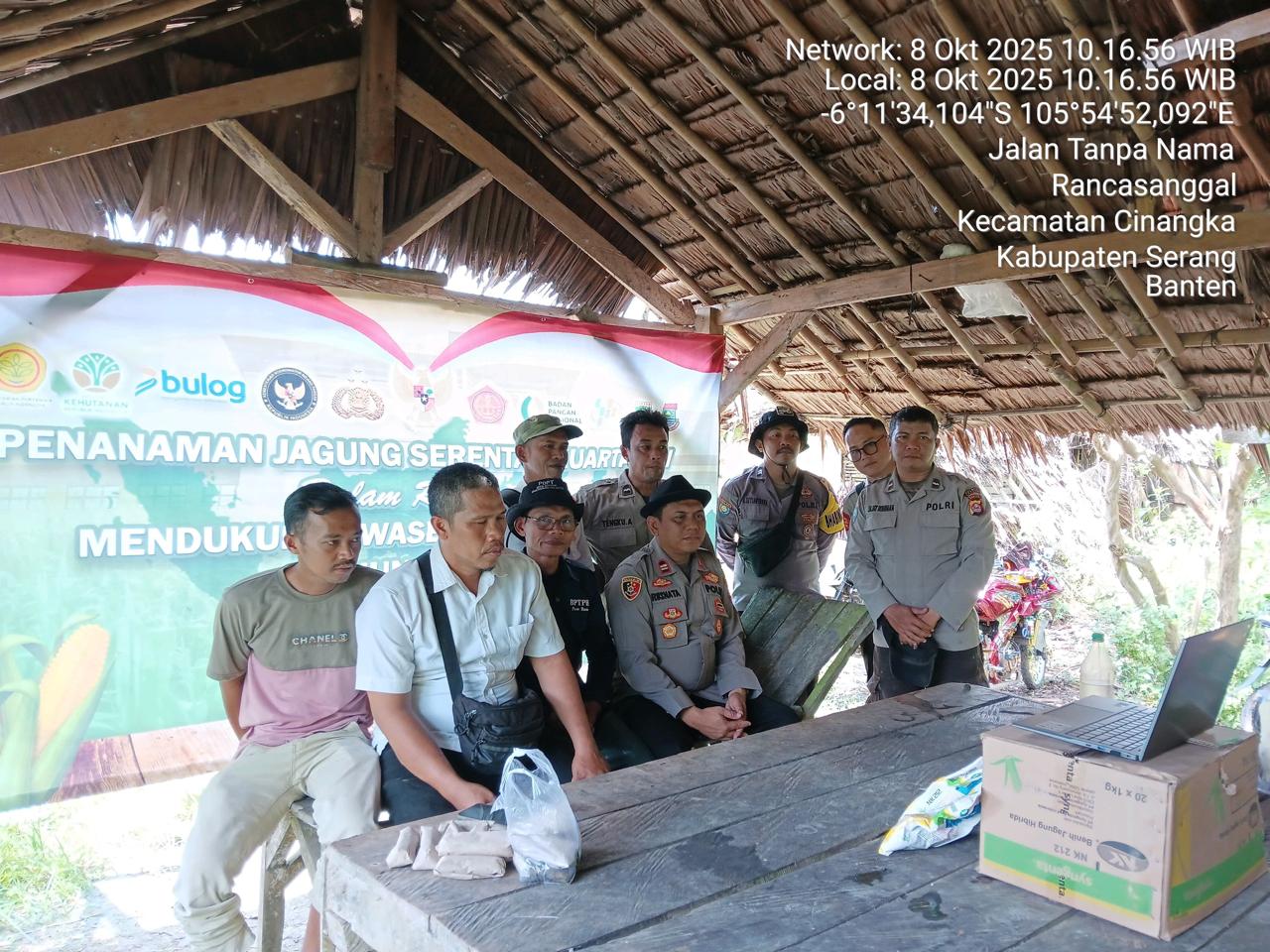 -POLRES CILEGON- Polda Banten.Mendukung program ketahanan pangan nasional, Polres Cilegon,Polsek Cinangka bersama Ketua Kelompok Tani melaksanakan penanaman jagung serentak di Desa Rancasanggal Kecamatan Cinangka Kab Serang. Rabu (10-08-2025)