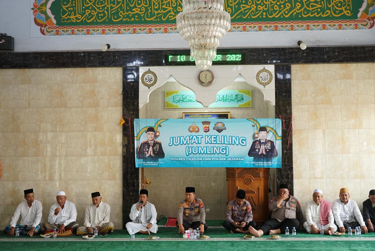 Cilegon – Dalam rangka mempererat hubungan antara Polri dan masyarakat, Kapolres Cilegon Polda Banten, AKBP Dr. Martua Raja Taripar Laut Silitonga, S.H., S.I.K., M.Si., melaksanakan kegiatan silaturahmi Jum’at Keliling (Jumling) di Masjid Al-Mutahidin, Blok Bango, Lingkungan Leuweung Sawo, Kelurahan Kotabumi, Kecamatan Purwakarta, Kota Cilegon. Kegiatan berlangsung hangat dan penuh kebersamaan usai pelaksanaan ibadah salat Jumat. Jumat (10/10/2025).