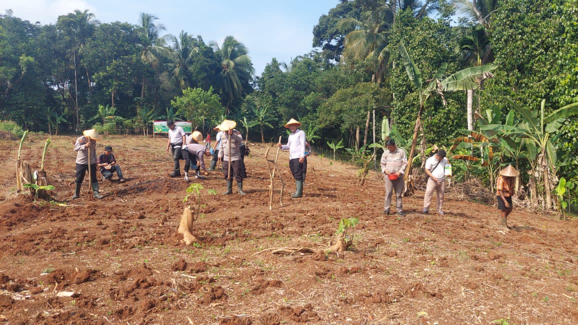 Penanaman Jagung serentak Kuartal IV Seluruh Indonesia di lahan milik kelompok tani Bpk. Maman Rt. 01/01 Kp. Macute Kel. Angsana Kec. Mancak-Serang daerah hukum Polres Cilegon.