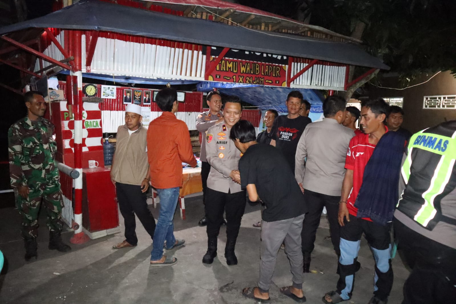 Cilegon – Dalam upaya memperkuat kemitraan antara Polri dan masyarakat dalam menjaga keamanan lingkungan, Kapolres Cilegon Polda Banten, AKBP Dr. Martua Raja Taripar Laut Silitonga, S.H., S.I.K., M.Si., melaksanakan kunjungan ke Pos Kamling Pandan Duri di Kampung Sumuranja Sabrang, Desa Sumuranja, Kecamatan Puloampel, Kabupaten Serang, Sabtu malam (11/10/2025).