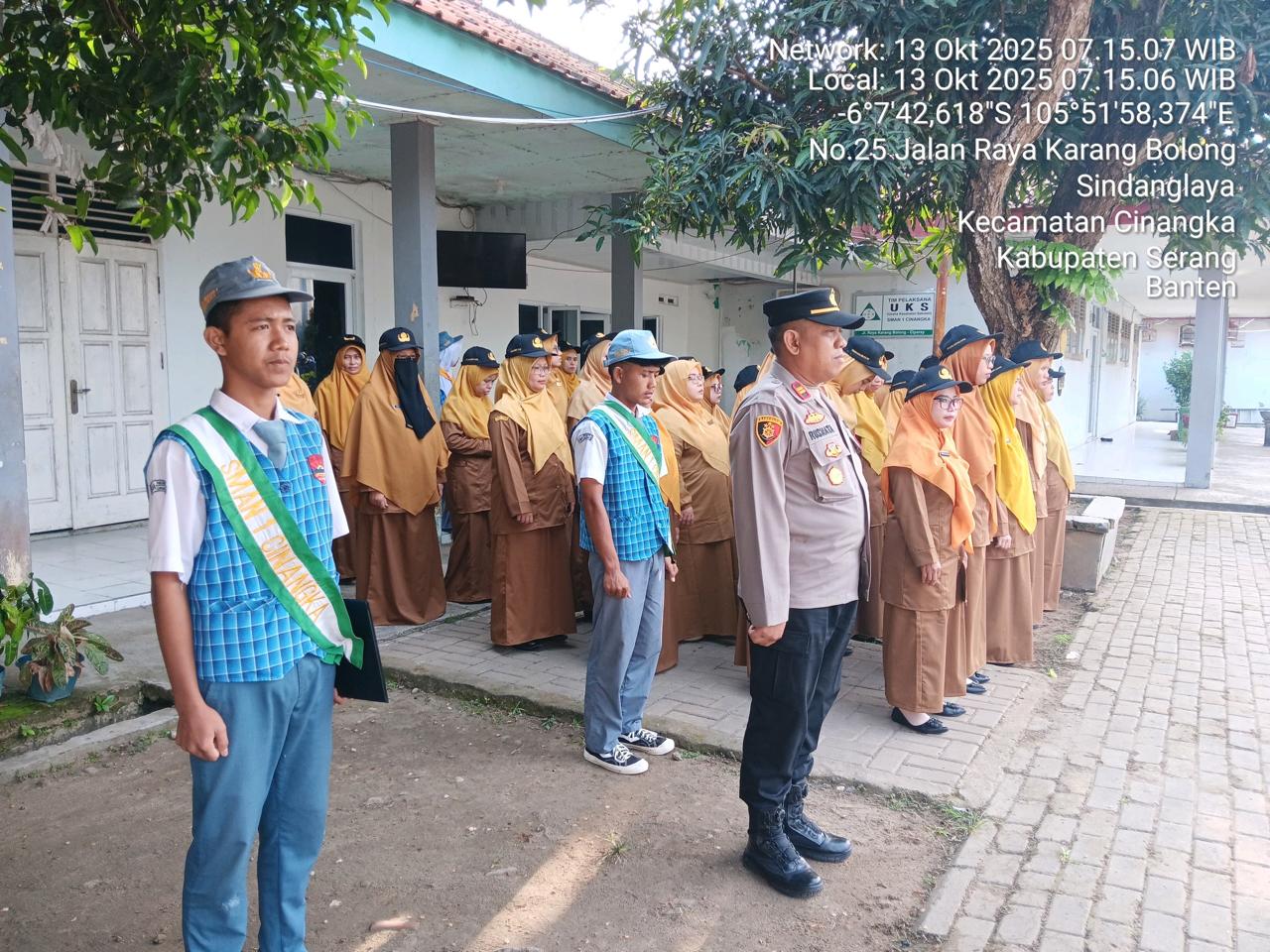 -*POLRES CILEGON*- Polda Banten.dalam Rangka Menjaga dan menjunjung Rasa kebangsaan Sejak dini Maka Kapolsek Cinangka Polres Cilegon IPTU Rusnata Membawakan Upacara Bendera Merah Putih di Sekolah SMA Negeri 1 Cinangka yang beralamat Kp. Ciparay Desa Sindanglaya Kecamatan Cinangka Kabupaten Serang Senin (13/10/2025)