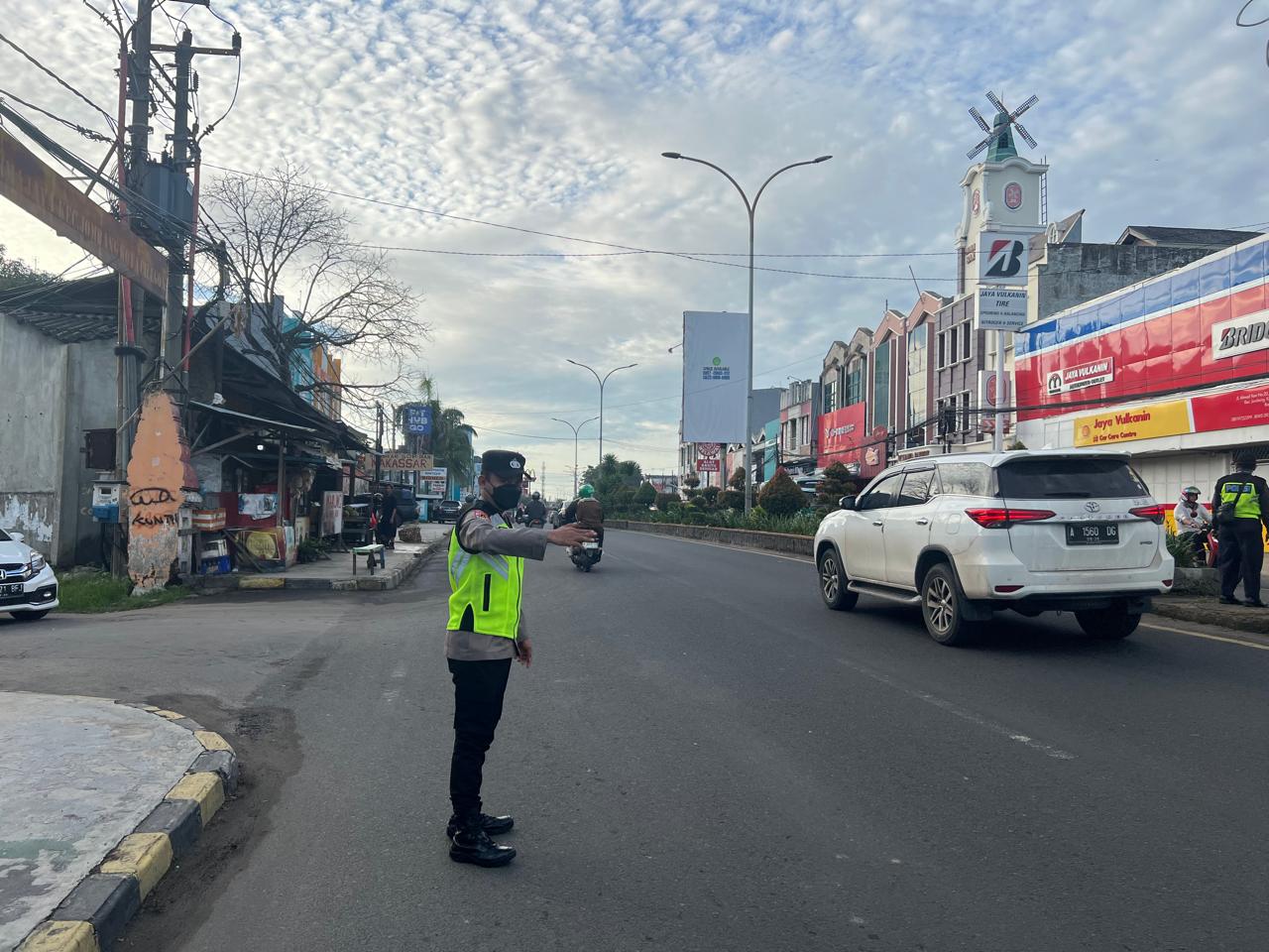 Polres Cilegon, Brigpol Hadi sudrajat melaksanakan kegiatan pengaturan arus