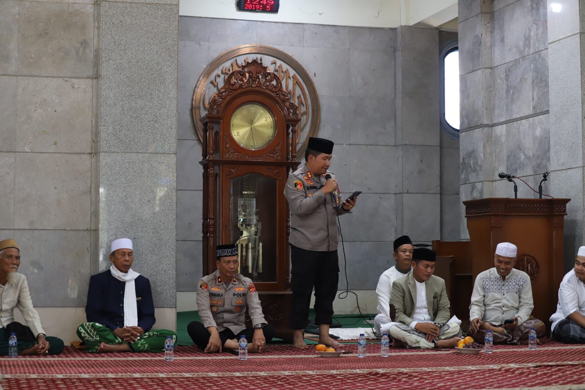 Kegiatan ditutup dengan sesi tanya jawab antara Kapolres dan jamaah, serta penyerahan bingkisan kepada pengurus DKM Masjid Baitul Islah sebagai bentuk apresiasi dan dukungan Polres Cilegon terhadap kegiatan keagamaan di wilayah setempat.
