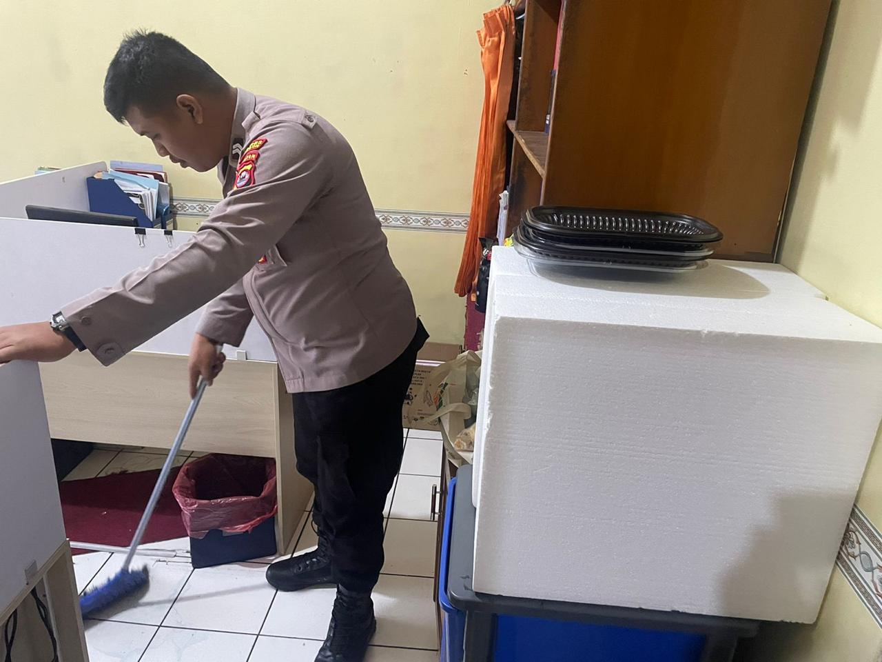 Anggota Bag SDM Polres Cilegon, Akivitas ddalam pelaksanaan membersihkan ruangan menjadi kegiatan aktif setiap hari.