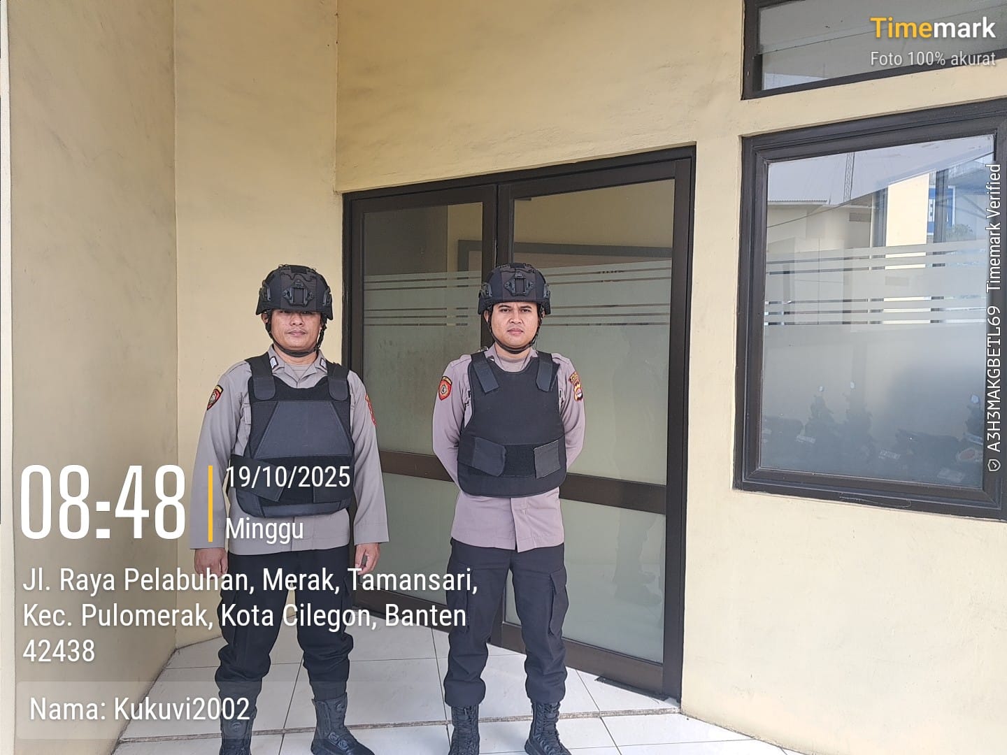 Cilegon - Personel piket jaga Polsek Kskp Merak Polres Cilgon Polda Banten melaksanakan siaga 1 Polsek pelaksanaan Sispam Mako oleh piket siaga dipimpin oleh Kspk Polsek Kskp Merak Polres Cilegon Polda Banten, Minggu (19/10/2025).