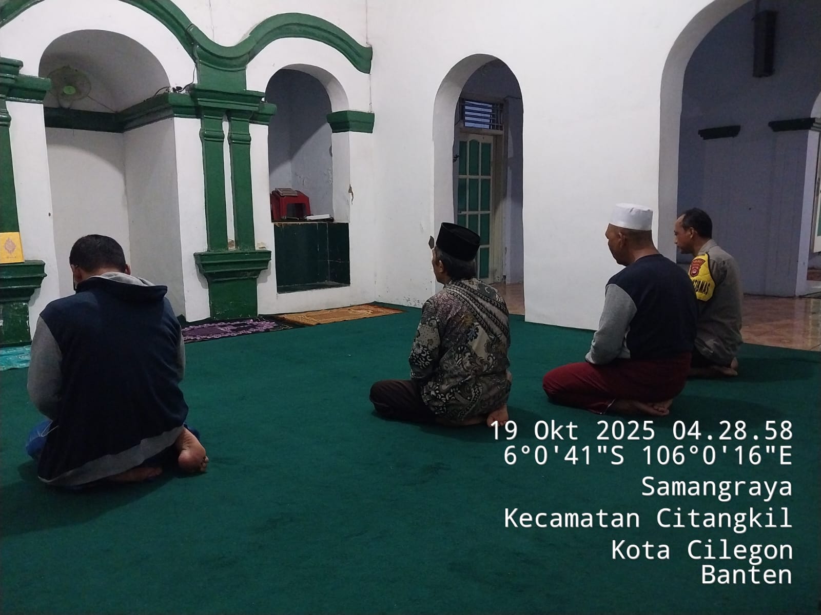 *Cilegon* – Bhabinkamtibmas Polsek Ciwandan Polres Cilegon Polda Banten menggelar kegiatan Pembinaan Rohani dengan Sholat subuh keliling di Masjid Yang ada Di Daerah hukum Polsek Ciwandan Polres Cilegon Polda Banten, Minggu (19/10/2025).