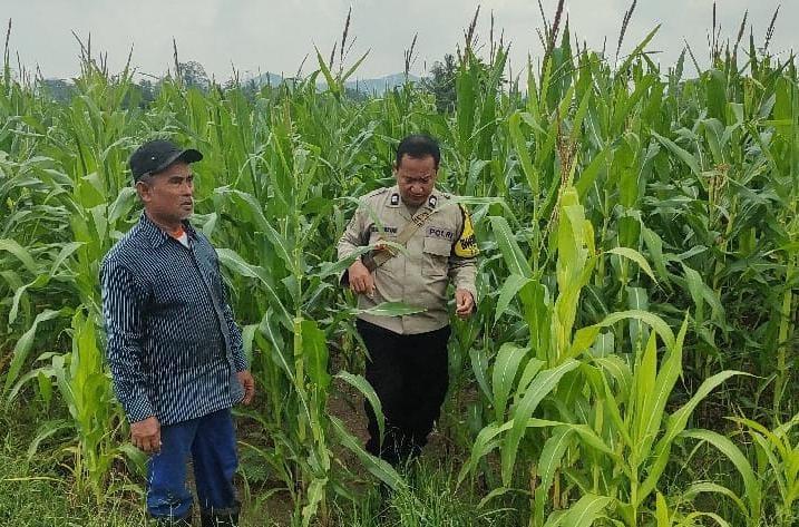 Monitoring ini dilakukan terhadap tanaman jagung yang telah memasuki usia tanam 95 hari. Selain melihat perkembangan tanaman, Bhabinkamtibmas juga melakukan dialog dengan petani untuk mengetahui kendala yang dihadapi serta memberikan motivasi dalam meningkatkan hasil pertanian.