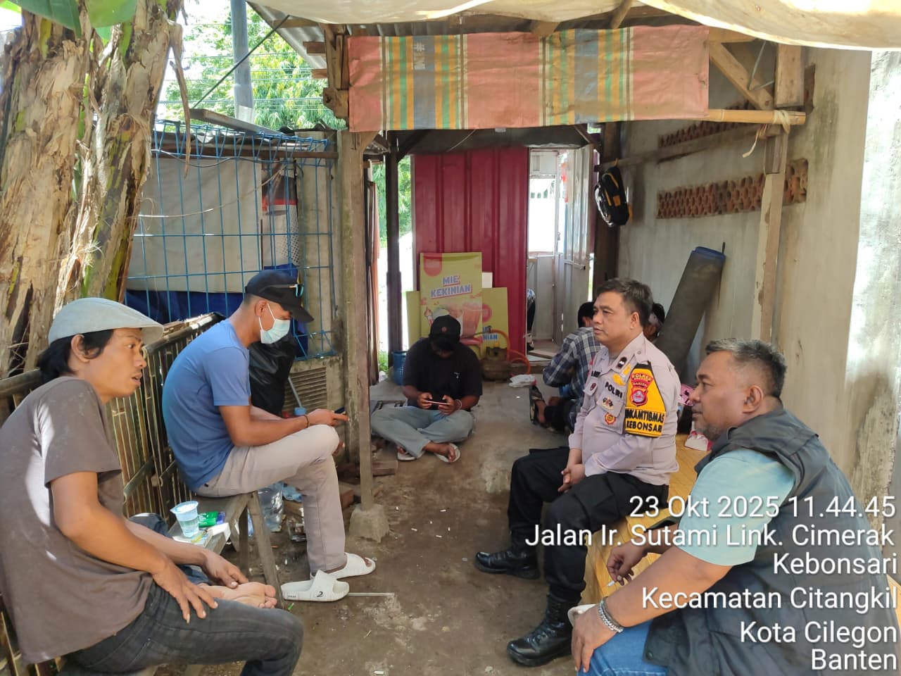 Cilegon - Bhabinkamtibmas Kelurahan Kepuh Polsek Ciwandan Polres Cilegon Polda Banten AIPDA Mere Erlansyah Menyapa warga serta Ajak warga Binaannya untuk berperan aktif jaga keamanan lingkungan serta jalin komunikasi agar tercipta situasi aman di daerah hukum Polsek Ciwandan Polres Cilegon Polda Banten, Kamis (23/10/2025).