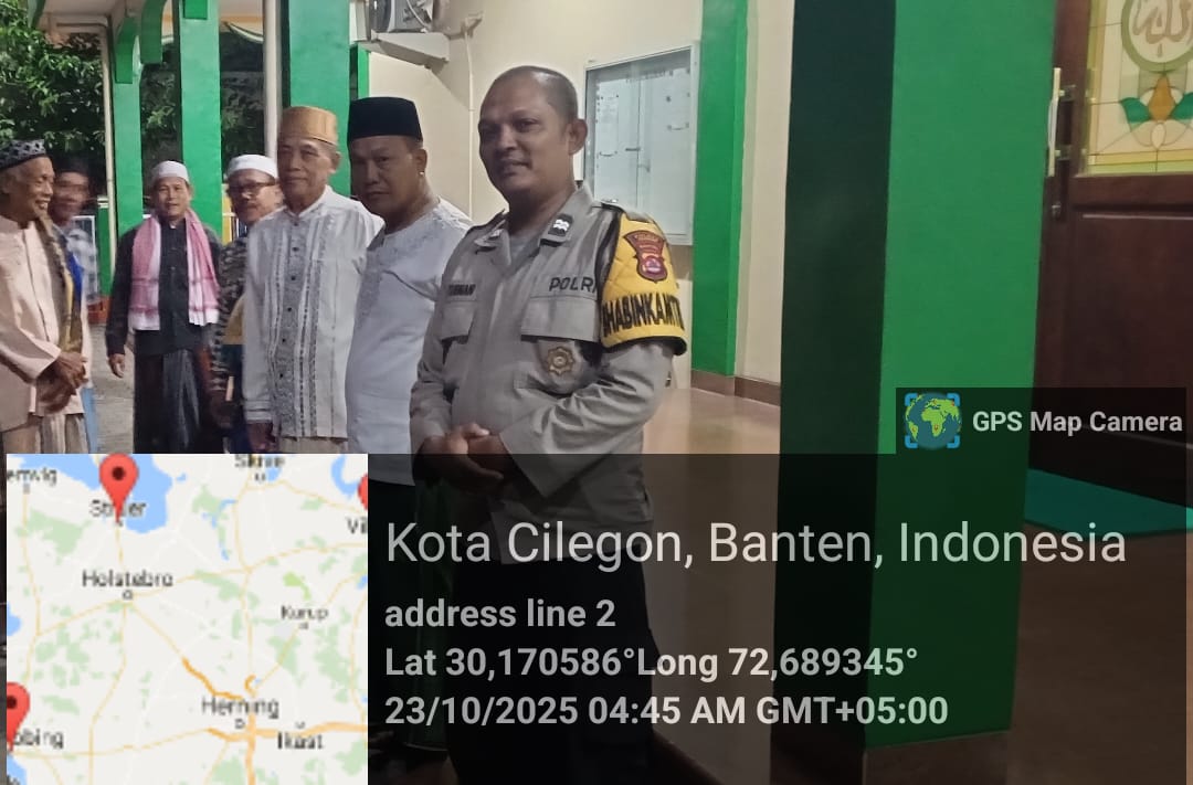 Cilegon - Dalam Rangka Memakmurkan Masjid Dan Sambang,Bhabinkamtibmas Polsek Ciwandan Polres Cilegon Polda Banten Sholat Berjama’ah dan Bersilaturahmi kepada para tokoh Agama sebagai upaya meningkatkan Ukhuwah Islamiyah dalam menjalin silaturahmi dan membangun komunikasi yang baik, Kamis (23/10/2025).