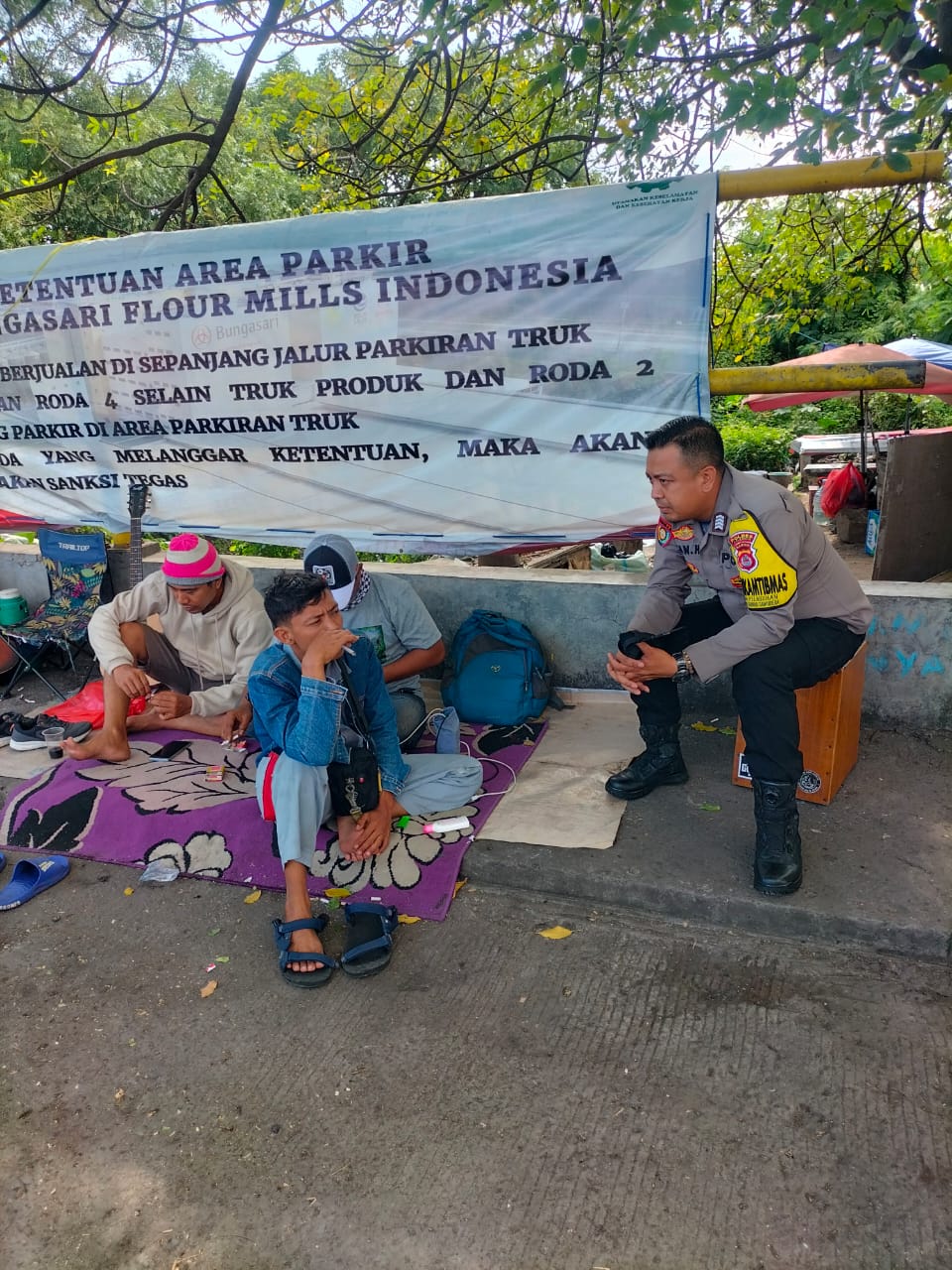 Jalin Silaturahmi, Bhabinkamtibmas Pelabuhan Polsek Kawasan Pelabuhan Banten berbincang dengan Buruh Pelabuhan
