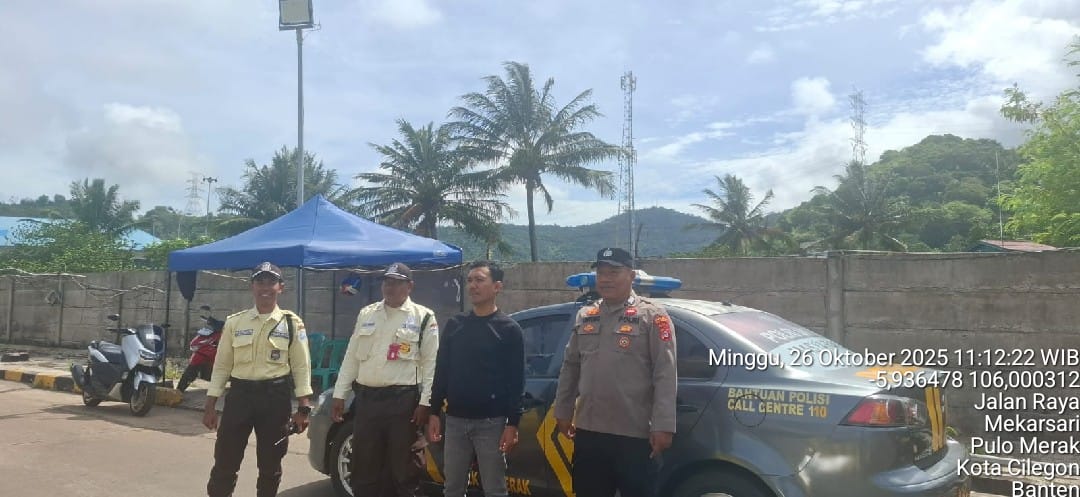 Cilegon - Personel Polsek Kskp Merak Polres Cilegon Polda Banten melaksanakan sambang dan patroli kawasan pelabuhan merak dalam rangka menjaga Harkamtibmas di Kawasan Pelabuhan Merak, Minggu (26/10/2025).