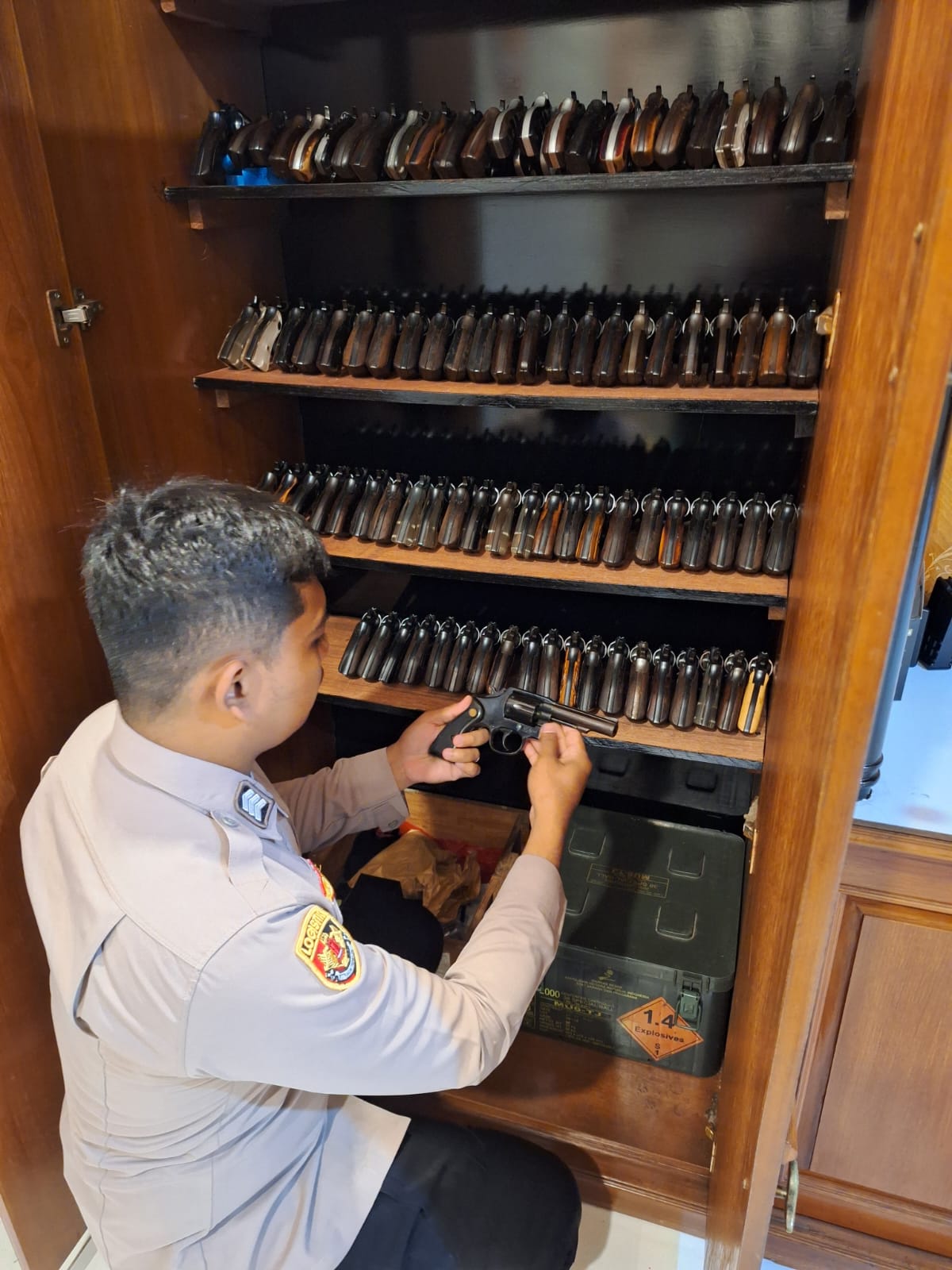 Cilegon,Polres Cilegon Polda Banten Personel Baglog Melaksanakan pengecekan dan membersihkan senjata Api Dinas yang ada Digudang Logistik Polres Cilegon,