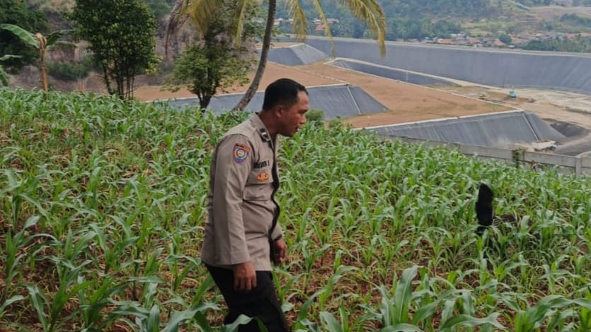 Kelompok Tani Florida Jaya Lakukan Perawatan Tanaman Jagung bersama bhabin Lebakgede Polsek Pulomerak