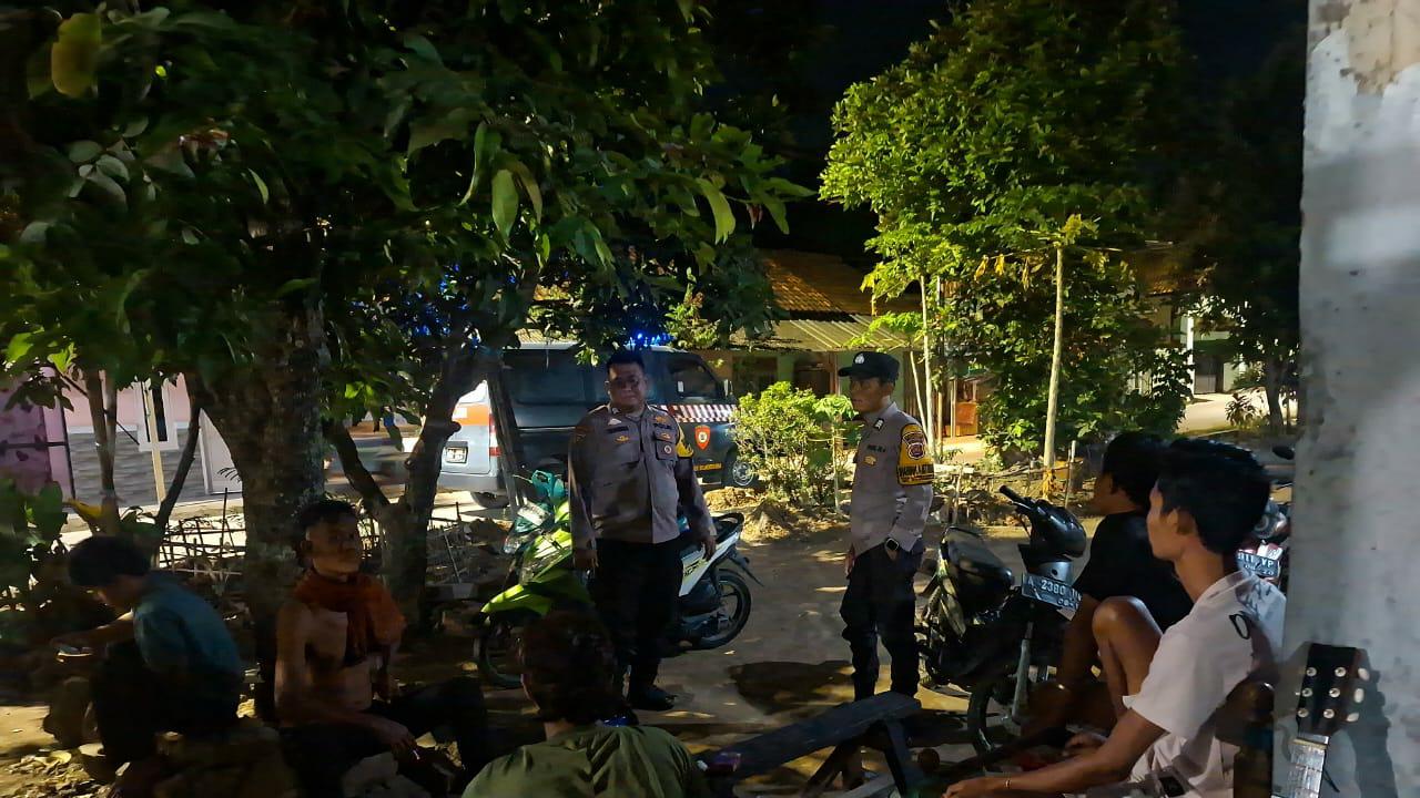 Bripka Tri dan Brigadir Andri Bhabinkamtibmas Patroli dan Sambang Malam Ke Pemuda Upaya Jaga Kamtibmas