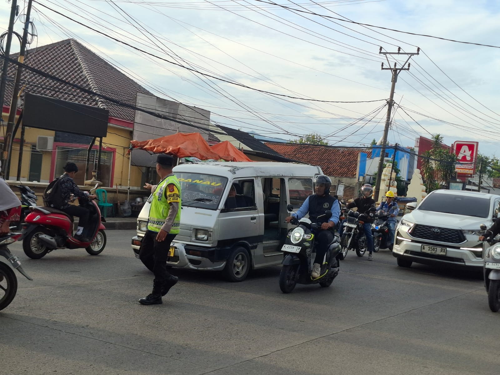 Lakukan Pengaturan Lalu Lintas Oleh Polsek Anyar di Jalur Anyar - Cinangka