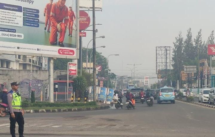 Cegah kemacetan, personil polsek cibeber laksanakan pengaturan lalin