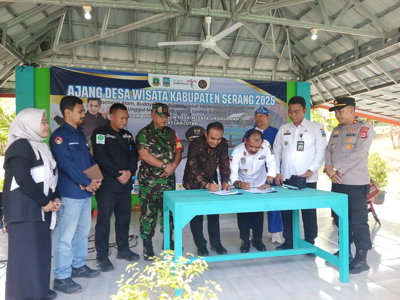 Kapolres Cilegon Polda Banten AKBP Dr. Martia Raja Taripar Laut Silitonga diwakili Kapolsek Anyar IPTU Iwan Sofiyan mengatakan Bertempat di Sumur Kenclong Desa Tambangan Ayam Kecamatan Anyar Kabupaten Serang dilaksanakan Penganugrahan Penghargaan bagi Pemenang Ajang desa Wisata Kabupaten Serang 2025 diselenggarakan Oleh Dinas Kepemudaan Olahraga dan Pariwisata Kabupaten Serang "Tema Harmoni Alam, Budaya dan Buatan Untuk Membangun Desa Wisata Unggul Menuju Kabupaten Serang Bahagia"