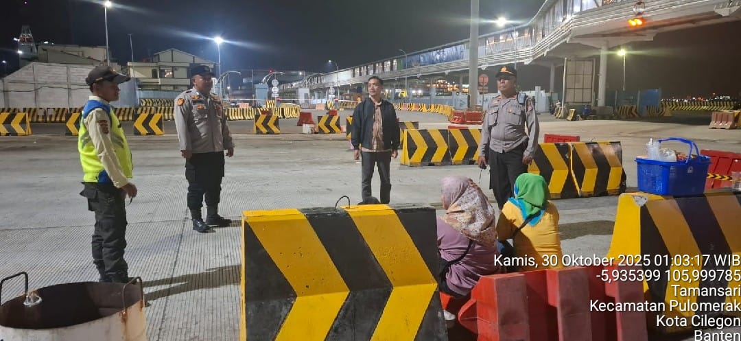 =Cilegon - Personil Polsek Kskp Merak Polres Cilegon melaksanakan patroli di kawasan pelabuhan merak memberikan rasa aman dan damai, Kamis (30/10/2025)