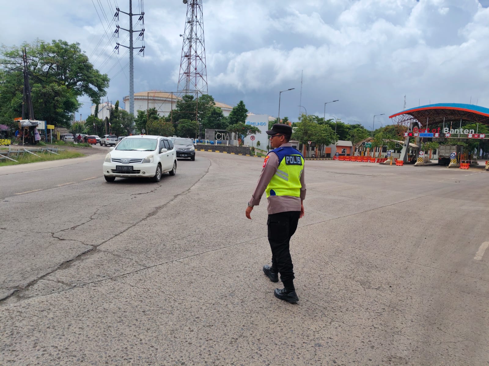 Kapolres Cilegon AKBP Martua Raja Taripar Laut Silitonga Melalui Kapolsek Kskp Banten Polres Cilegon AKP Fredo Leonard menyampaikan Laksanakan Pengamanan Sesuai plotinganya lakukan Pengaturan Supaya Arus Lalu Lintas tetap Berjalan lancar dan Pastikan tidak ada hambatan.