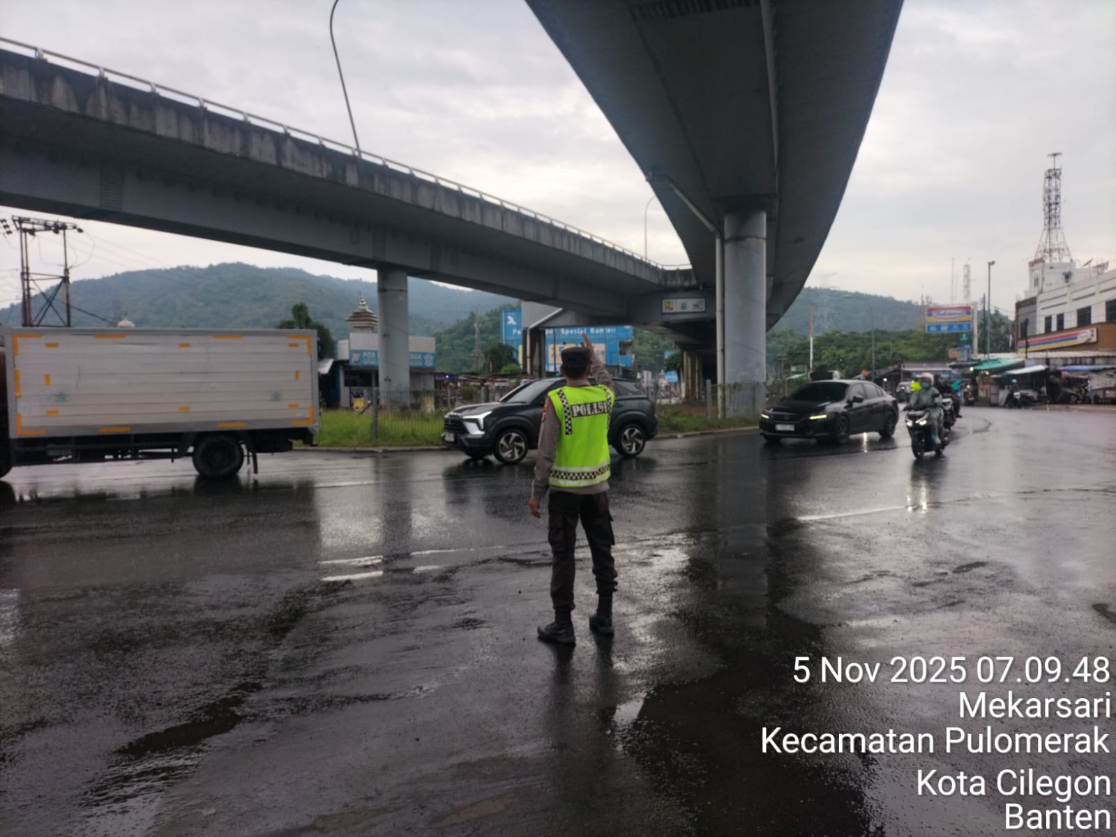 Polsek KSKP Merak Wujudkan Polri Presisi Melalui Pengaturan Arus Kendaraan Penyeberangan