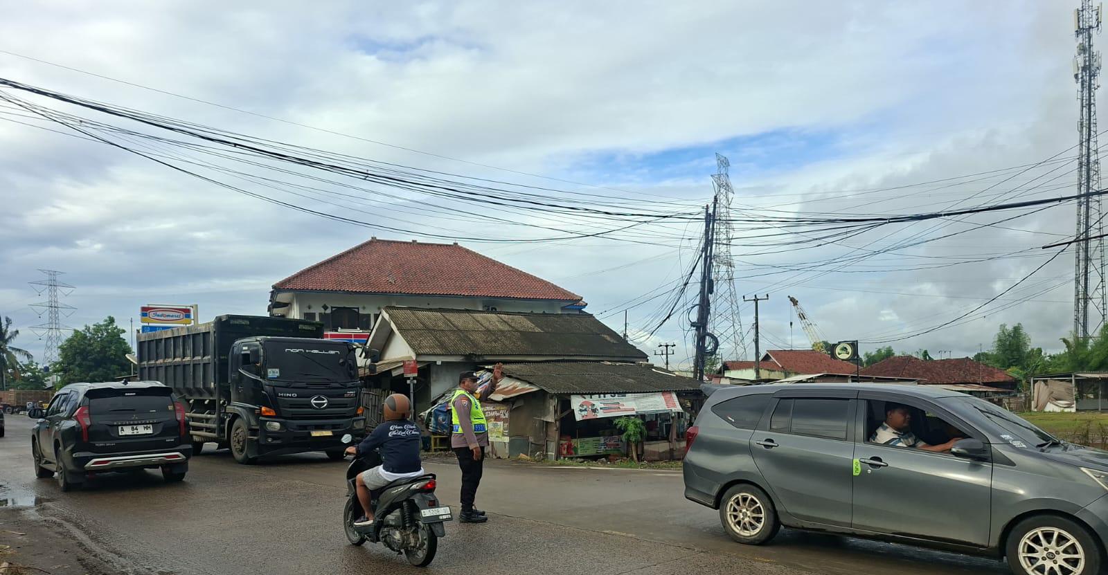 Anggota Polsek Bojonegara Laksanakan Gatur Lalin Di simpang Wadas Bojonegara Sore Hari