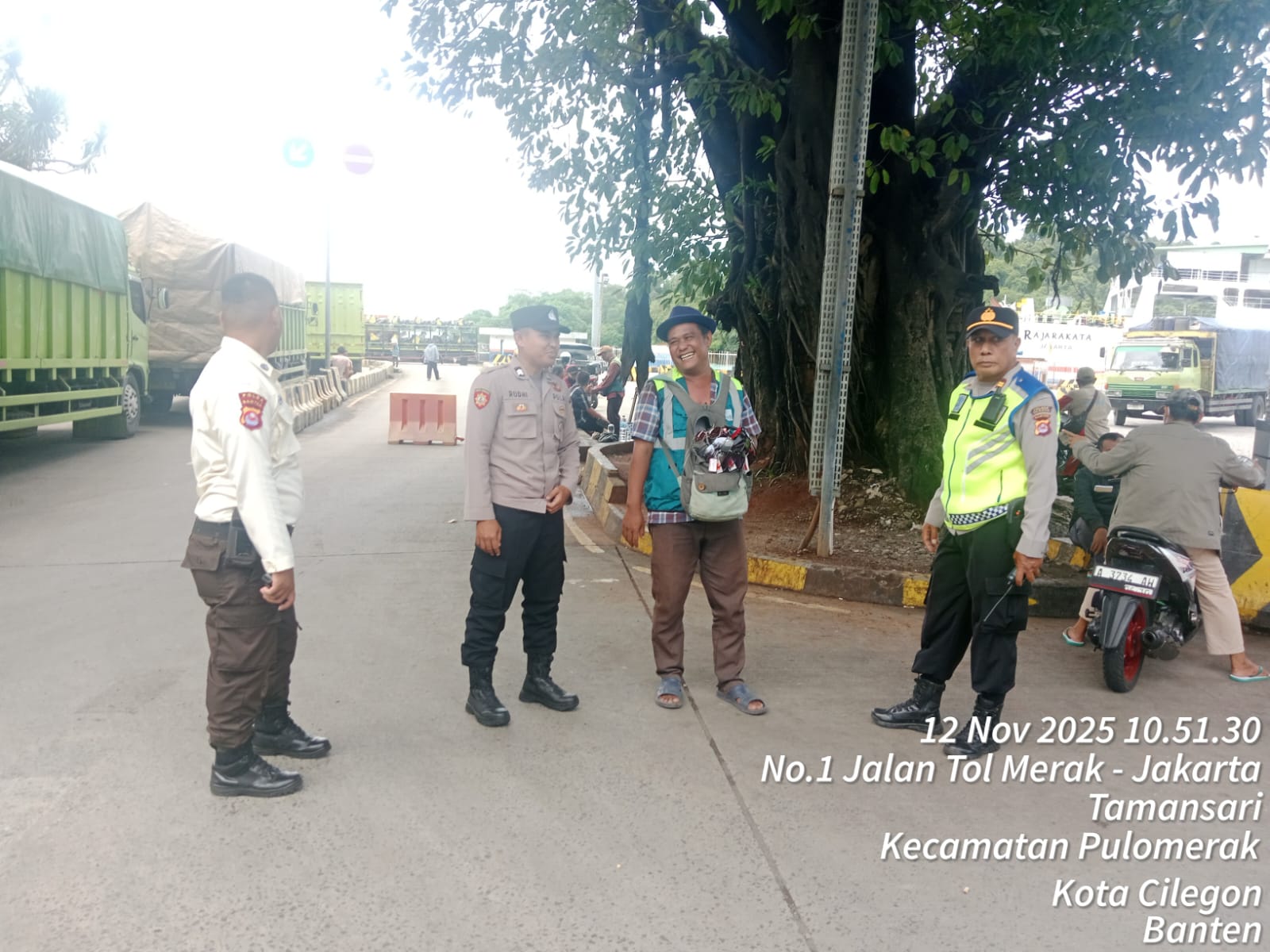 Cilegon - Personel Polsek Kskp Merak Polres Cilegon Polda Banten melaksanakan sambang dan patroli kawasan pelabuhan merak dalam rangka menjaga Harkamtibmas di Kawasan Pelabuhan Merak, Rabu (12/11/2025).