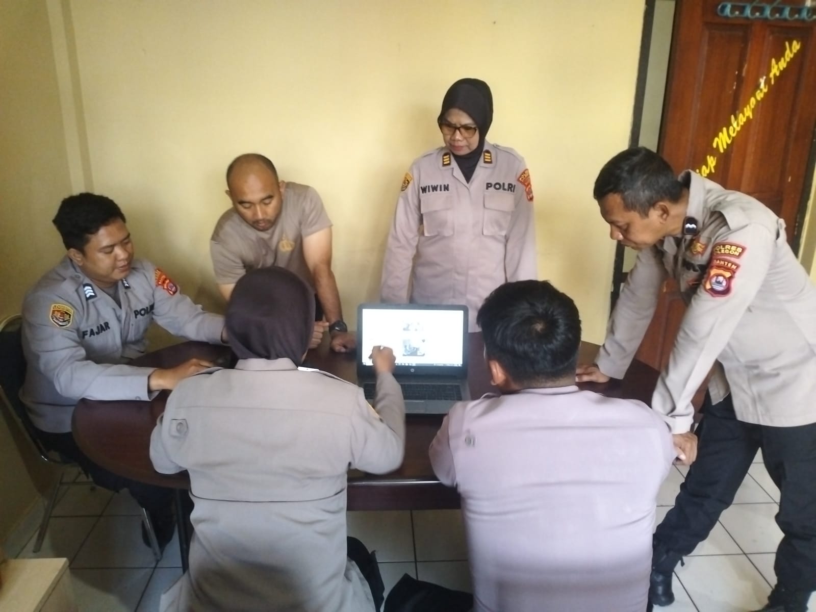 cilegon Polda Banten Staf Logistik melakukan pengisian aplikasi SIMAK dan SIMAN