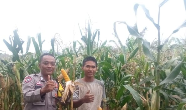 Bhabinkamtibmas Dampingi Panen Jagung Hibrida di Kaligandu, Purwakarta Polres Cilegon
