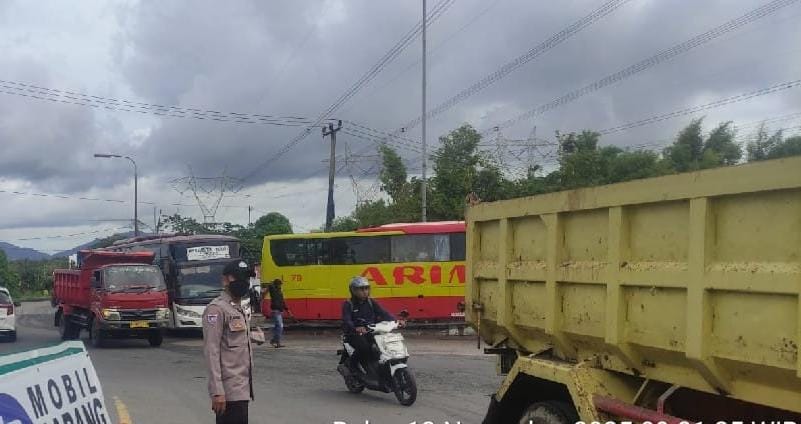 Antisipasi kecelakaan lalulintas, personil polsek cibeber sigap lakukan pengaturan lalin