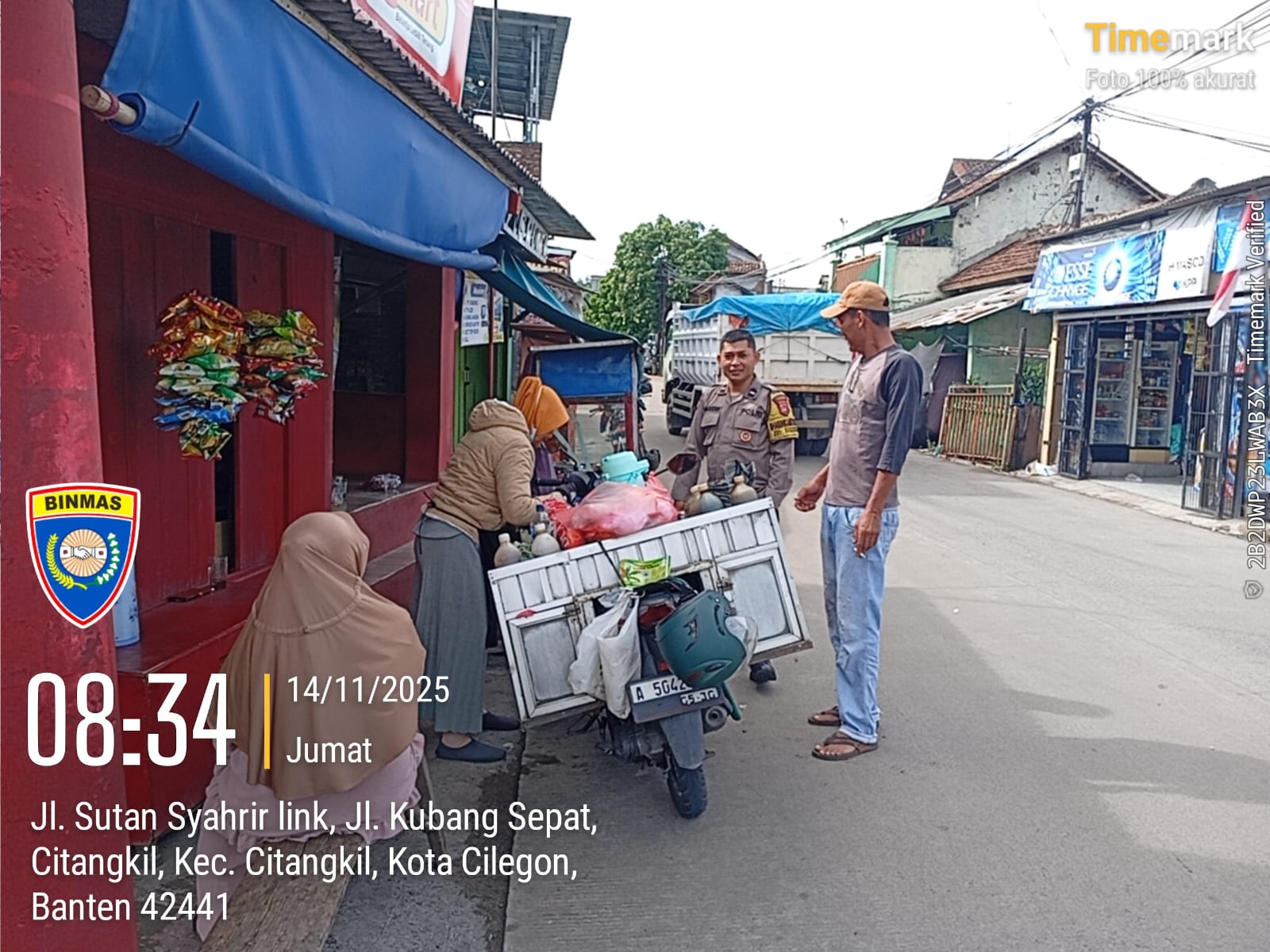 Cilegon – Bhabinkamtibmas Polsek Ciwandan Selalu Hadir Di Setiap Kegiatan warga binaanya merupakan salah satu tugas rutin Bhabinkamtibmas, yakni dengan melaksanakan kunjungan kepada masyarakat binaannya untuk menjalin silaturahmi yang lebih erat dan menyampaikan pesan-pesan kamtibmas serta mencari informasi yang berkembang di masyarakat agar tercipta situasi kamtibmas yang aman dan kondusif, Sabtu (15/11/2025).