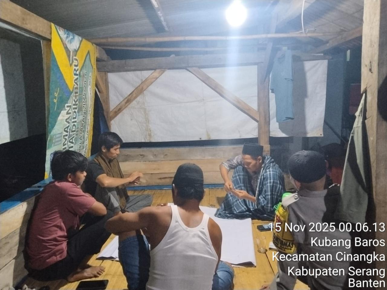 *Polres Cilegon* || Personel Bhabinkamtibmas Polsek Cinangka melaksanakan Program Komandan Wish Kapolda Banten RONDA SATKAMLING menyampaikan komunikasi dengan Petugas Siskamling agar berperan aktif dalam menciptakan Harkamtibmas yang aman dan Kondusif, Minggu (16/11/2025).