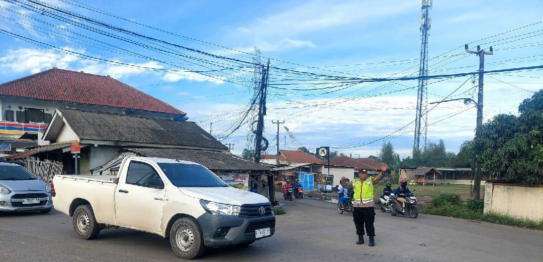 Bripka Bambang dan Bripka Geri Polsek Bojonegara Laksanakan Gatur Lalin di Bojonegara
