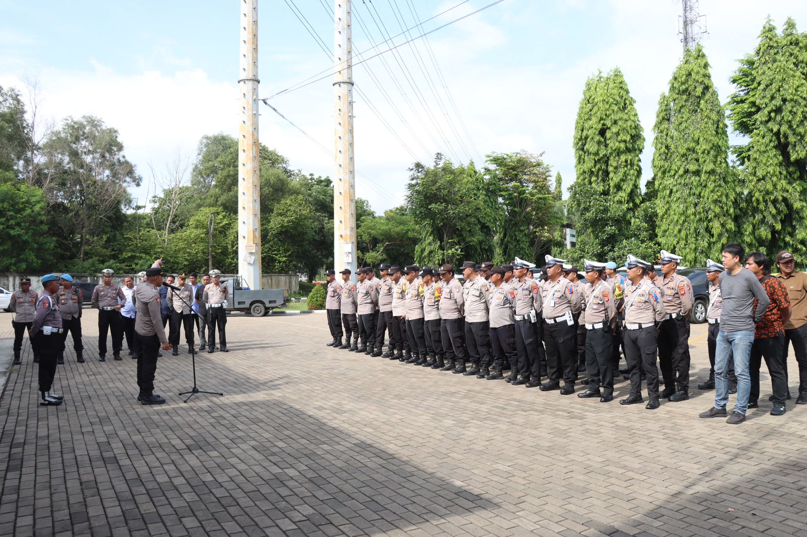 Kegiatan pengamanan dimulai sejak pagi hari dengan melakukan sterilisasi lokasi dan penempatan personel pada titik-titik strategis. Personel Polres Cilegon disiagakan untuk memastikan kelancaran arus lalu lintas, keamanan area kunjungan, dan pengawalan rombongan Menteri beserta jajaran terkait.