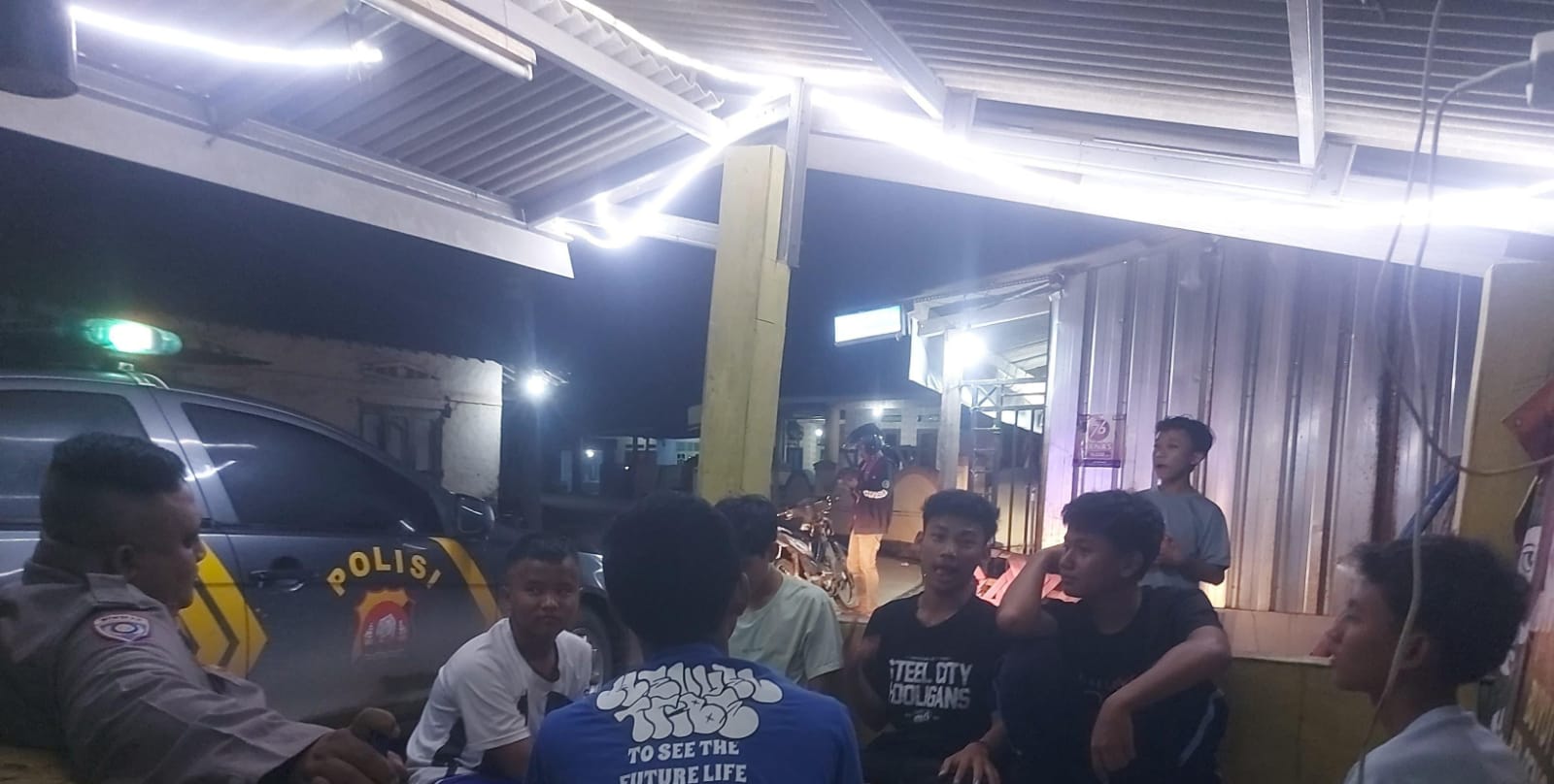 Berikan Motivasi Ke Warga,Aipda Hendri dan Bripka Heru Bhabinkamtibmas Gerebek Pos Ronda berikan imbauan Kamtibmas
