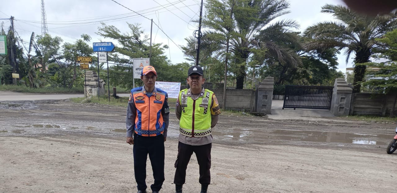 Giat Pengaturan Lalin Di Jalan Raya PT MSJ Bojonegara, Bhabinkamtibmas dan Dishub Laksanakan Strong Poin Sore Hari