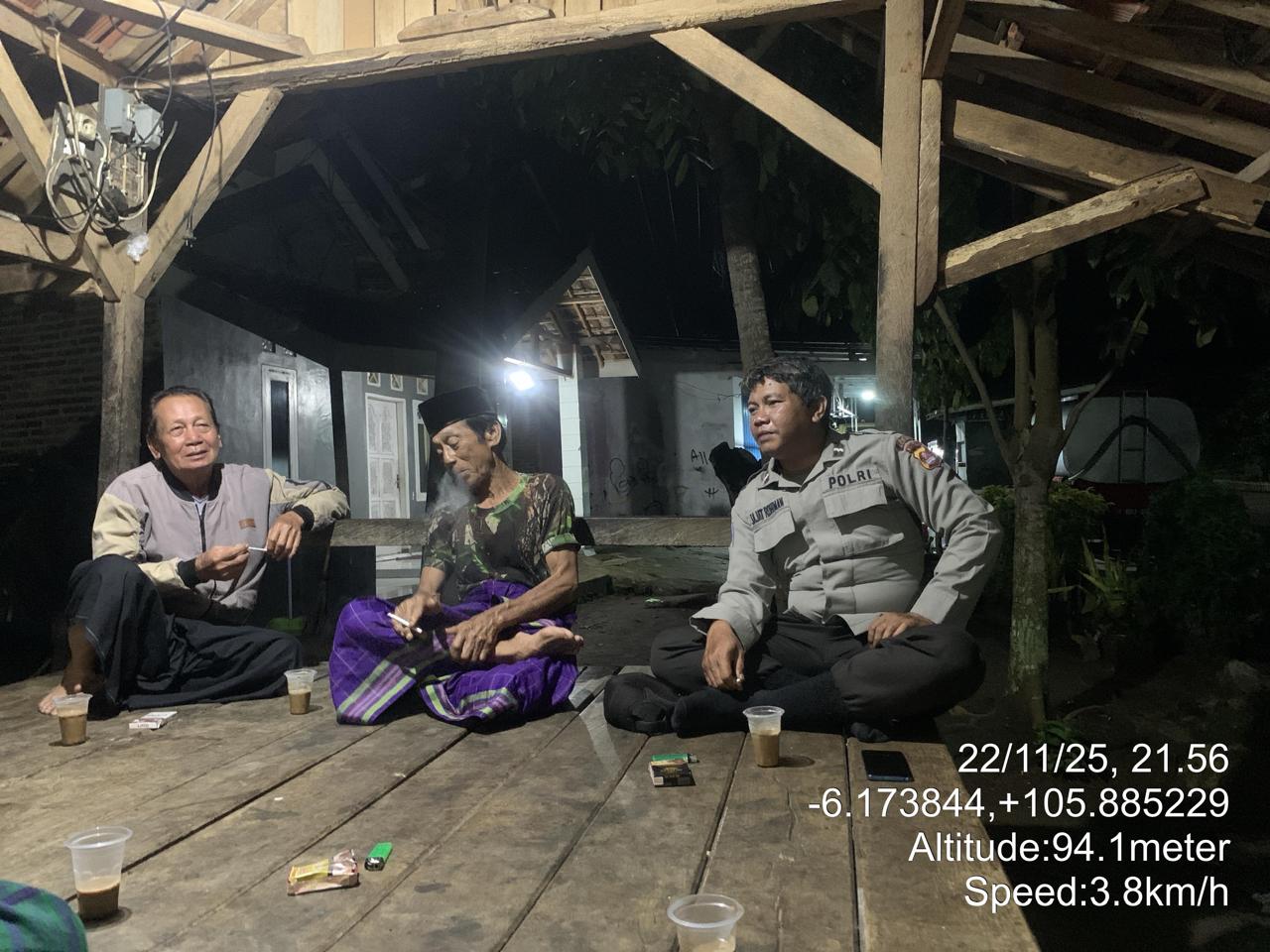 *Polres Cilegon* || Personil Bhabinkamtibmas Polsek Cinangka melaksanakan Program Komandan Wish Kapolda Banten RONDA SATKAMLING menyampaikan komunikasi dengan Petugas Siskamling agar berperan aktif dalam menciptakan Harkamtibmas yang aman dan Kondusif, Minggu (23/11/2025).