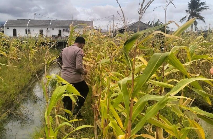 Implementasi Program Asta Cita, personil bhabinkamtibmas polsek Cibeber monitoring di perkebunan Jagung*