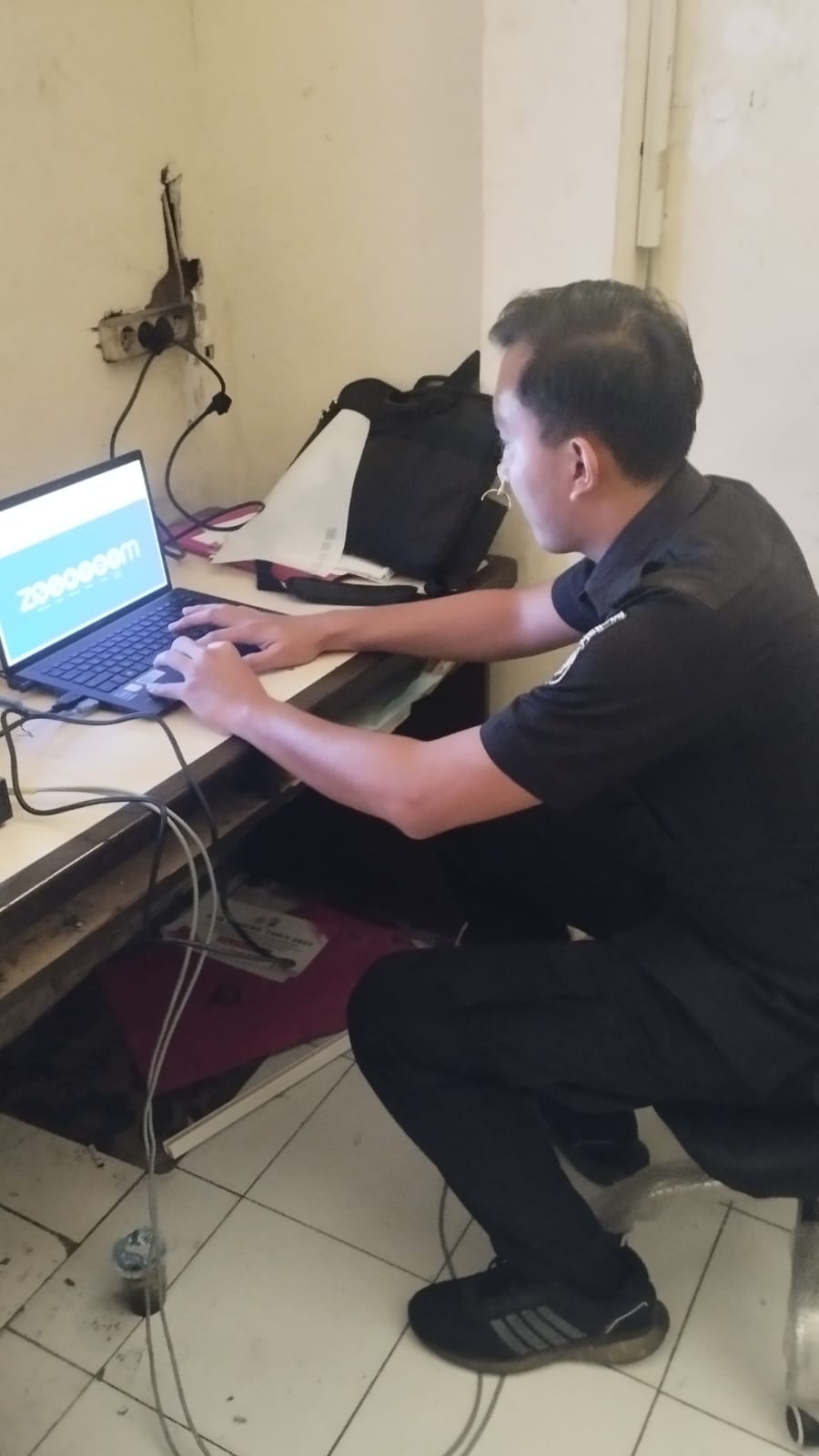 Anggota Tik Polres Cilegon Menyiapkan Sarana dan Prasarana Untuk Kegiatan Zoom meeting Dalam pelaksanaan kegiatan zoom meeting tersebut anggota TIK Polres Cilegon yang bertanggung jawab untuk menyiapkan peralatan zoom. Selain itu agar di tidak ada gangguan jaringan sebelum pelaksanaan anggota TIK melakukan pemeriksaan terhadap sarana dan prasarana tersebut . Satu jam sebelum kegiatan zoom meeting itu dimulai. Kapolres Cilegon AKBP. DR. MARTUA RAJA TARIPAR LAUT SILITONGA. melalui Kasi TIK IPTU Lukman menyampaikan bahwa “untuk menunjang kelancaran penyampaian informasi anggota TIk Polres Cilegon selalu memeriksa sarana dan prasarana tersebut, sebelum maupun pada saat pelaksanaan akan selalu di monitor