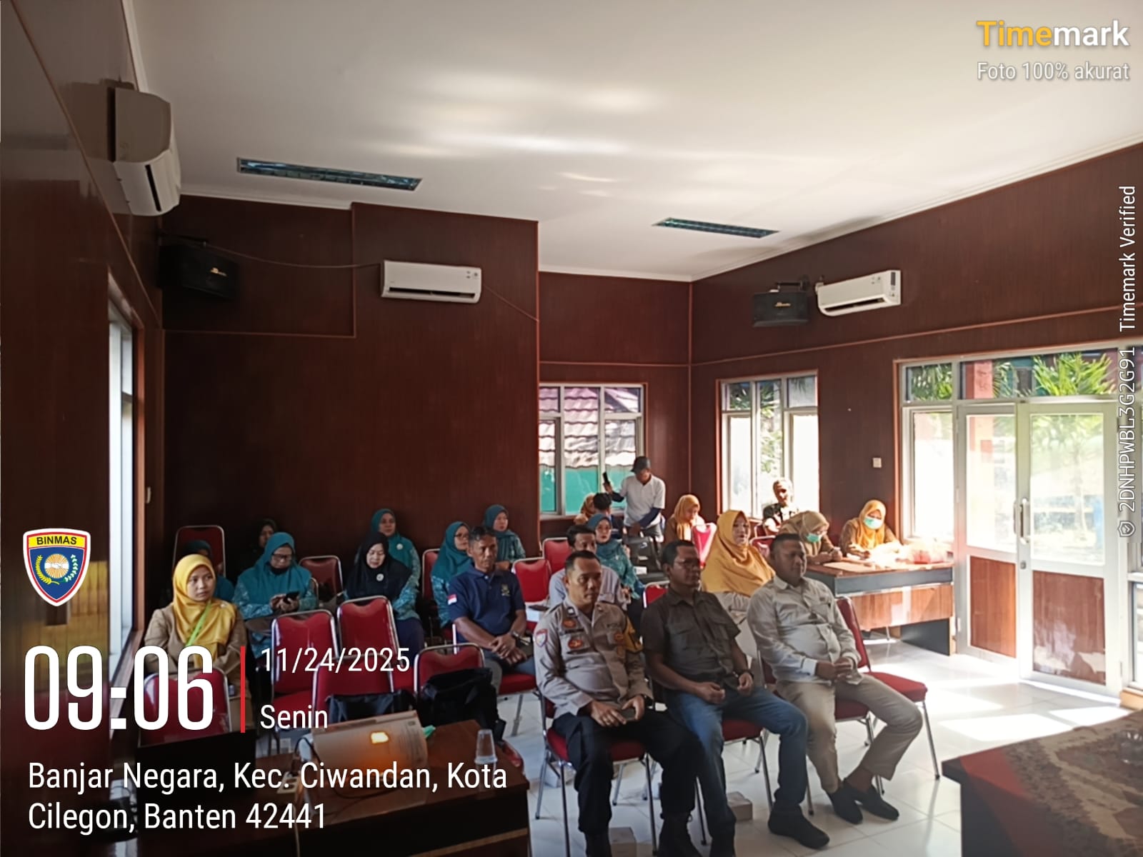 Cilegon - Bhaninkamtibmas Polsek Ciwandan Polres Cilegon Polda Banten  Bersama Personil Bhabinkamtibmas Polsek Ciwandan AIPTU Jamaludin menghadiri kegiatan Lokakarya mini Lintas Sektor Bidang Kesehatan UPTD Puskesmas Ciwandan I Tahun 2025 Di Aula Kantor Kecamatan Ciwandan, Senin (24/11/2025).