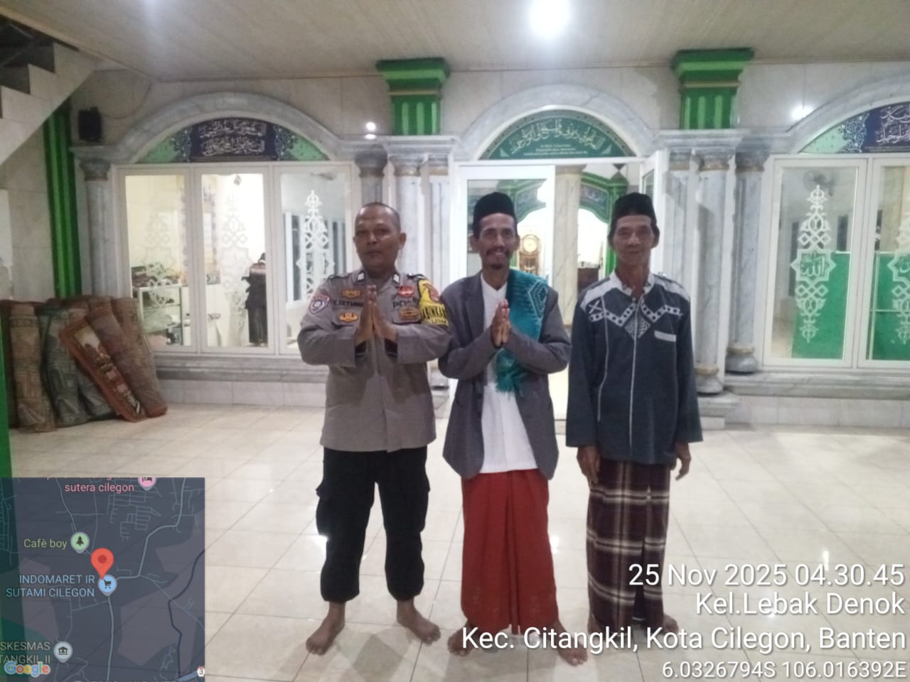 Cilegon – Bhabinkamtibmas Polsek Ciwandan Polres Cilegon Polda Banten menggelar kegiatan Pembinaan Rohani dengan Sholat subuh keliling di Masjid Yang ada Di Daerah hukum Polsek Ciwandan Polres Cilegon Polda Banten, Senin (24/11/2025).